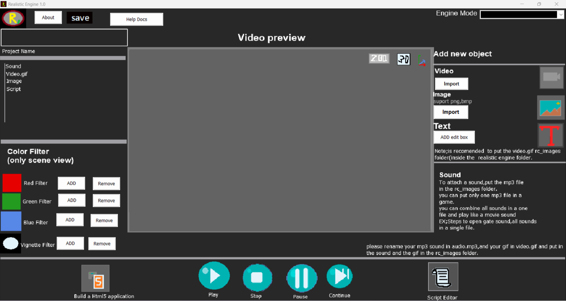 Realistic Engine is a free and simple game engine to create your own Video game.